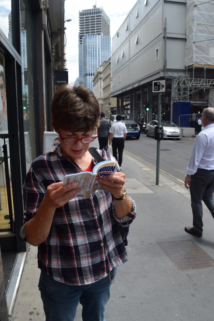When we arrived at Marylebone at 12.10pm today, I saw a man having his shoes shined on a ‘Shoe Shine Express seat’; and we went down the stairs to the Bakerloo line, got on to a tube that looked and felt like an overheated baked bean can, were off it within 4 minutes and on to a Metropolitan line train with a lot less people on it, and were repeatedly told to mind the gap. We got off at 12.35pm, I saw a cafe called ‘Protein Haus’ (selling protein shakes and fitness food), and I got out my phone to look up directions (and noticed a sprinkler sprinkling water over a small patch of grass) – and then we began trying to navigate via the phone (which was extremely difficult), by 1pm we’d got out a traditional London A-Z, were still confused, and my mother made an executive decision to hail a taxi, and stuck her arm up. We were in 1 (which felt like an oven) – driven by a brilliant traditional London cabbie within 2 minutes, passed a gym that said ‘turning builders bums into chiselled glutes’ on the front, and we were delivered to the visa centre we were aiming for several minutes later.