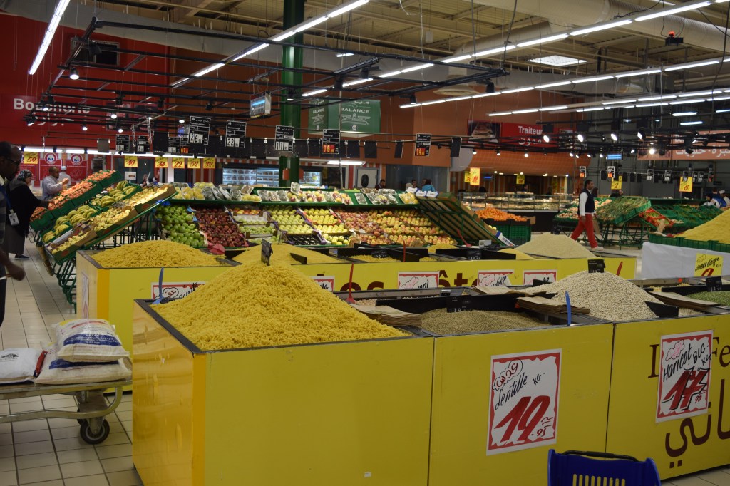We were driving down a long avenue lined with palm trees at that point, were told that the largest casino in Africa is in Marrakech, I saw a little shop that said ‘Lemonade Poisson’ on it, our guide said we’d get food from a supermarket for a picnic – which we stopped at.