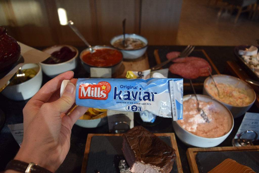 It was 7:30 AM in the city of Bodo – Norway – when I woke up on 11th September (so coming up for 2 weeks ago now) – and down in the hotel breakfast room, there the variety of food was similar to previous places (meaning massive), and I started with some fruit; and saw milk machines, coffee machines with multiple mugs and colours of teabag, 3 different colours of smoothie, several little water dispensers, a little fridge with ‘POST MILK GENERATION’ on the front, croissants and pastries, grapes and raspberries floating in something, and what seemed to be whole carrots and celery floating in something, a tube that said Original Kaviar on it, cheese, crackers, yogurt, a big toaster, a random cauliflower, lots of fish and cold meat, jars of cereal, and tiny little chocolate chip cookies.