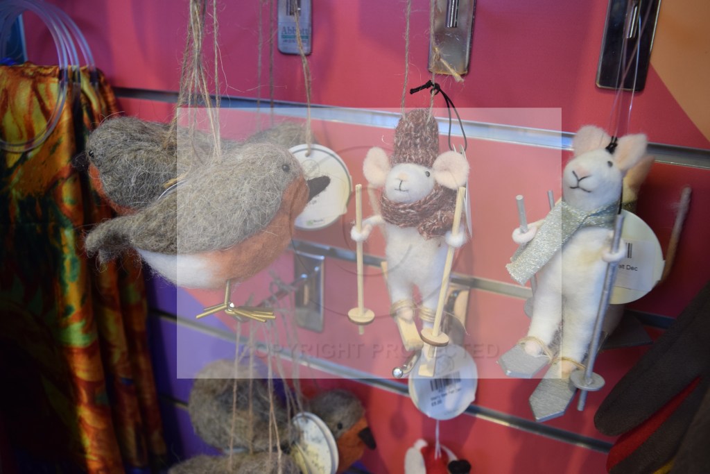 Back on the path, Mum diverted off it and made 1 attempt at pond dipping, a robin was doing some loud twittering, I saw a life ring by the lake, and acorns all over and under an oak tree; and we were by a bridge when the path ended – with a banner for a ‘spectacle of light’ (10th February -> 5th March 2023), and she pressed a button on a metal post, which then started saying stuff. A propeller plane flew over, a multicoloured climbing frame structure was nearby, and it was 1.38pm when the house was entered: ginormous meringues of various colours and all sorts of Christmas baubles – including skiing mice, veg baskets, and bumblebees with Santa hats were among the things in the shop; and up some stairs was a Chinese exhibition with a big metal horse in the middle of the first room.