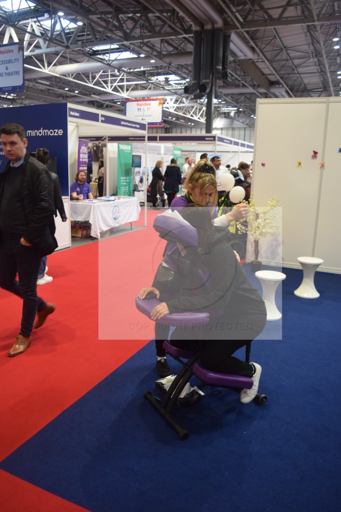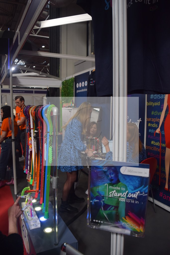 Neo walk acrylic walking sticks were the first thing seen, followed by Norwegian walkers, cars with steering balls and push pull mechanisms, booklets of ‘Things I need to know after my ileostomy’, Things I need to know after my colonostomy’ and ‘Healthy eating with a stoma’, Mybility All Terrain Scooters, and Baldertech (with a massive teddy bear in a scooter). A stall called ‘Massage The Senses’ had a couple of people face down on massage chairs being elbowed in the back; a virtual aviation experience was followed by beds for disabled babies; and on the next row was a virtual piano, Scooterpacs were available, and Life Gliders were much admired. I spotted a 10 (ish) year old girl with a small tube up her nose by a Trekinectic stall (with a 13 (ish) year old brother also in a chair), a Levitex stall offering free sleep consultations (and also saying that 87% of adults sleep in the wrong position), S.W.A.D was a stall about sex, and another 1 seemed to be about a Born To Perform Dance School that had auditioned for Britains Got Talent last year.