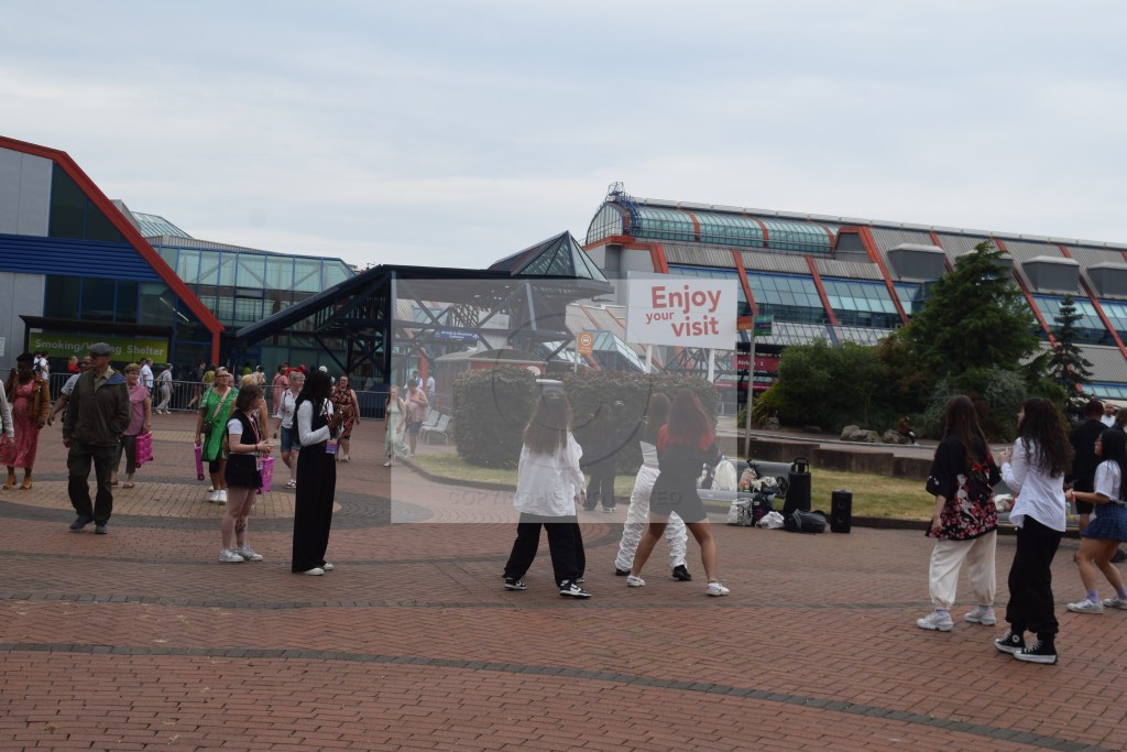 When the car was left, I could feel a few spots of rain, and a tunnel with fish painted all over the inside walls preceded more roads, and as we neared the halls of the National Exhibition Centre – a queue was building up between metal railings. Those were wiggled round; inside, a man with a very specifically gelled moustache directed us, we tried to find hall 18, Mum thought we’d gone round in a circle, I didn’t, and the hall was found: