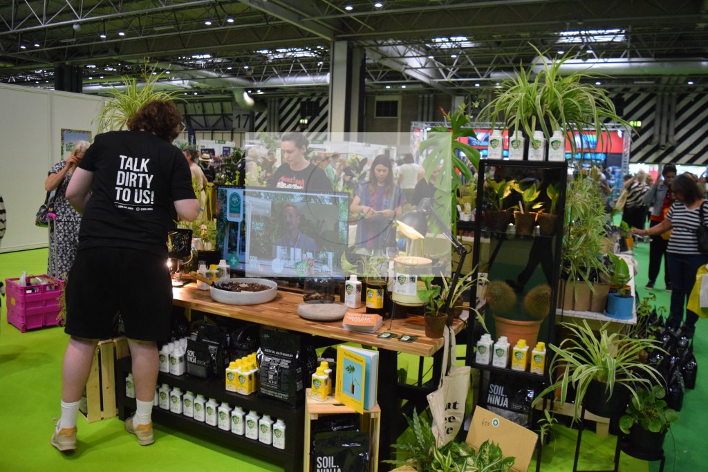 …my face was complemented, and something caused me to show them my info card (which I always have in my bag in case I’m questioned about my notepad – it explains encephalitis and short term memory loss) . A Lexus Takumi lunch club was at the end of 1 row, Thorntons Growing & Living had several different grow your own mushroom kits, Broadlands Pottery had gnomes and dog related decorations, Emotif had all sorts of stones – including sleep stones and snore stones, a Quince jewellery stall was also selling pyjamas, and I was irritating Mum due to the way I was browsing and she went and sat in the House Plant Hub. A stall called Naturally Nude Artisinal seemed to be all about curly hair and was opposite a stall about eyebrows, a choir started singing, a man from Bergs Design got a bit pissed off with me, a lot of diffusers were being sold by Natural Grace Scents, and The Plant Clinic was selling Soil Ninja stuff.