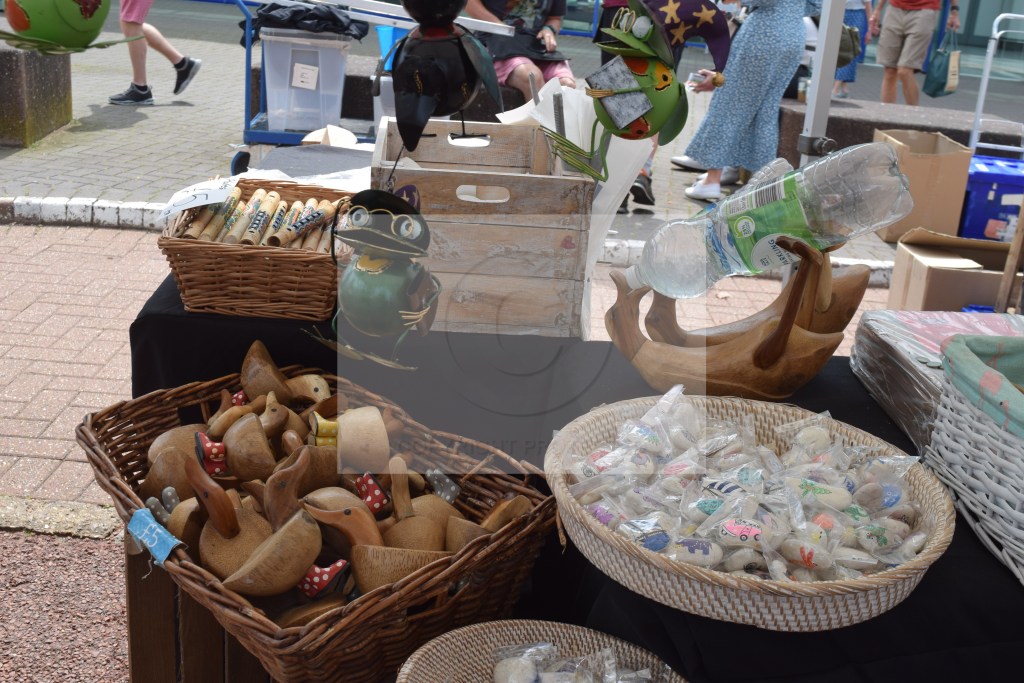…then lots of eco seed balls were on a Googies Plants and Seeds stall, QWICKHOSE had enormous numbers of hose attachments, and Little Pricks were what I saw before I spotted Mum again at about 12.35pm – by which point she’d bought an inflatable thing. Great British Dogs was in a row with lots of alcohol and solar powered lights; and a bit more wandering was done before leaving the hall at 12.55pm, while singing was continuing. UCARGO was displaying an underwater garden, Garden Organic’s (www.gardenorganic.org.uk) stall where we volunteer, was found just before 1pm, followed by the Newson Health Menopause Garden; YEO Valley Milk had a Landrover Defender by their stall, – and a sign saying when craft workshops and a silent disco would be occurring, and were allowing people headsets to tune in to the ‘sound of moosic’ from the valley.