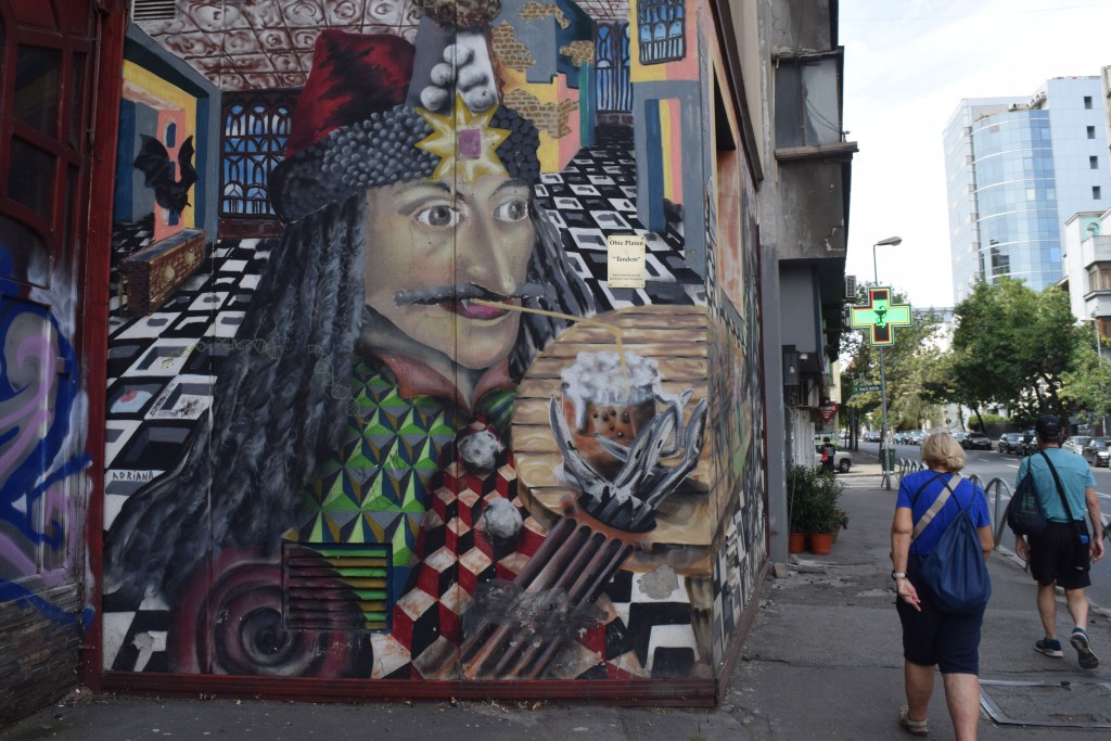 B was met, and the Circul Militar National (The Palace of the National Military Circle) and a man collapsed in a doorway were passed on the way, P ensured I knew we were going back the way we came, I noticed the t-shirts of 2 men: BROCCO-LI (and a cartoon of a bit of broccoli), and ‘I THINK I AM AS MAGIC AS FUCK’, and a man in a doorway was playing music with a saw.