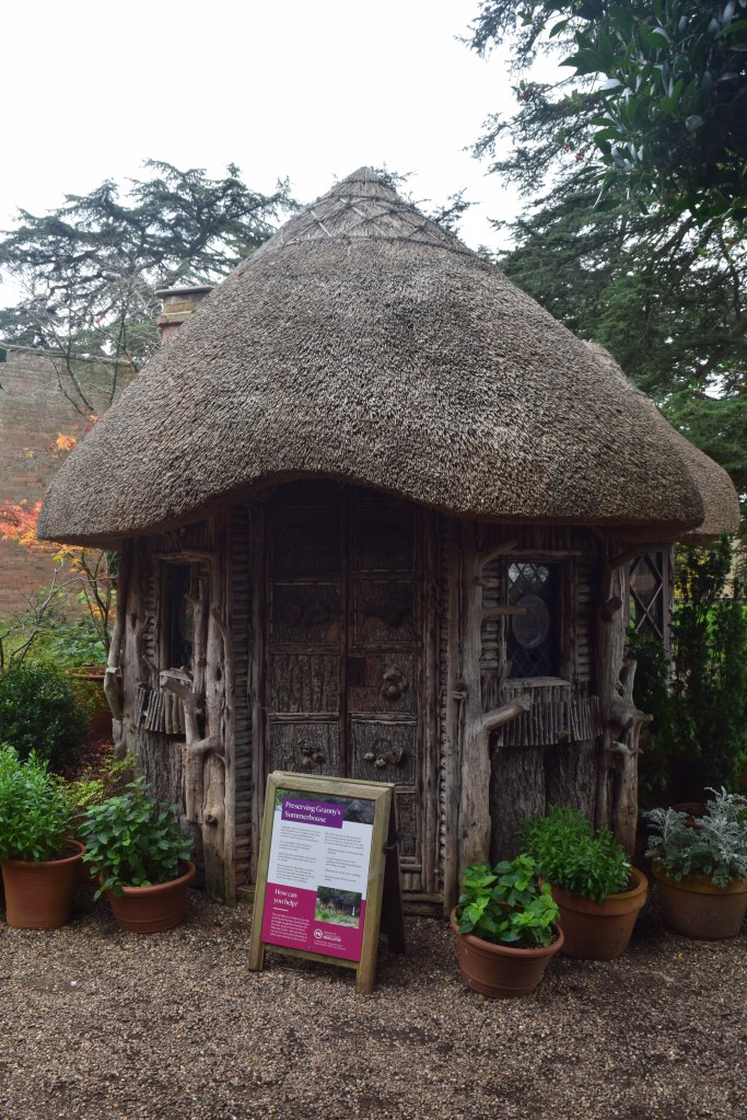 Mum caused some giggling at a gate by telling a couple of passers by that she was the toll lady; a woman wearing a badge saying ‘Information Host’ on was holding an antler and told a couple of people about a dog on a lead; then the courtyard area at the back of the house was passed through, and some grassy paths (passing Granny’s summer house) led to the cafe place at 12.30pm.