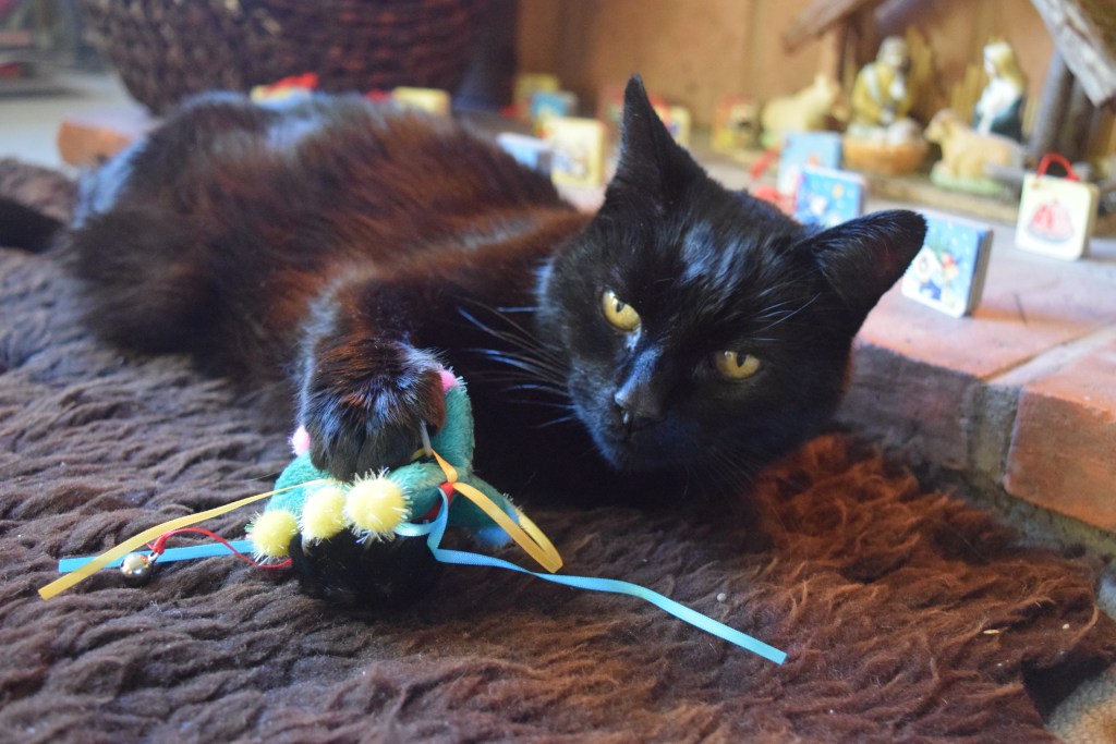 Our 20 year old cat joining in the festivities and clutching a bauble…