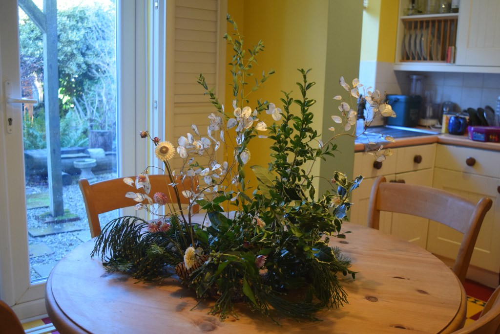 My wreath… (which probably wouldn’t be termed a wreath)… (The day of crafting a wreath)