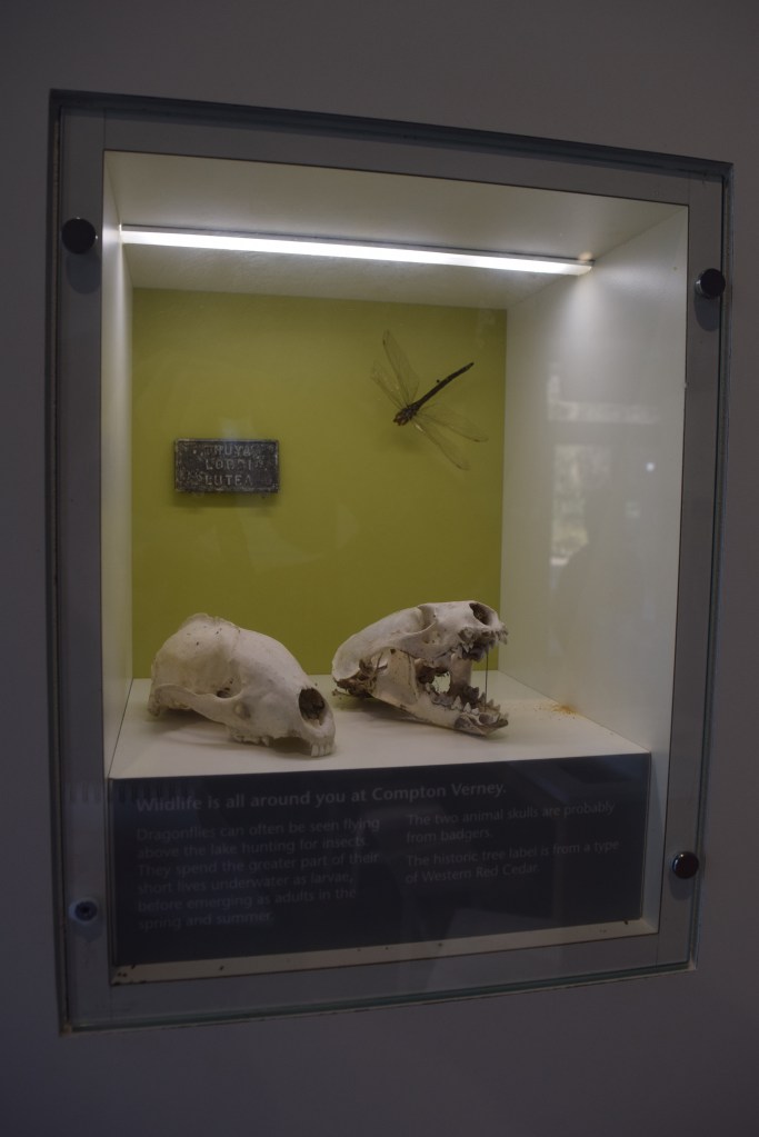 I forgot when we arrived at the art gallery because the closed doors started agitating her; I noticed a couple of odd things in the window (including something called a crocodile pull-along), FLWR PWRS was on the back of a person’s coat; and in reception – a ticket office woman (who also told us that 10am is when they open – not a slot) (as ‘your slot is’ was the phrase used when booking) told us to take as much time as we could to ‘let the magic happen’ in the Breathing the Forest installation. That had a board in it about the ‘Sculpture In The Park’ – mentioning Helen Chadwick’s ‘piss flowers’ (created by urinating on a flower shaped mould in snow and then casting it in bronze), a couple of what were thought to be badger skulls were visible, and a big Golden Retriever called Jim was yanking his owner through reception.