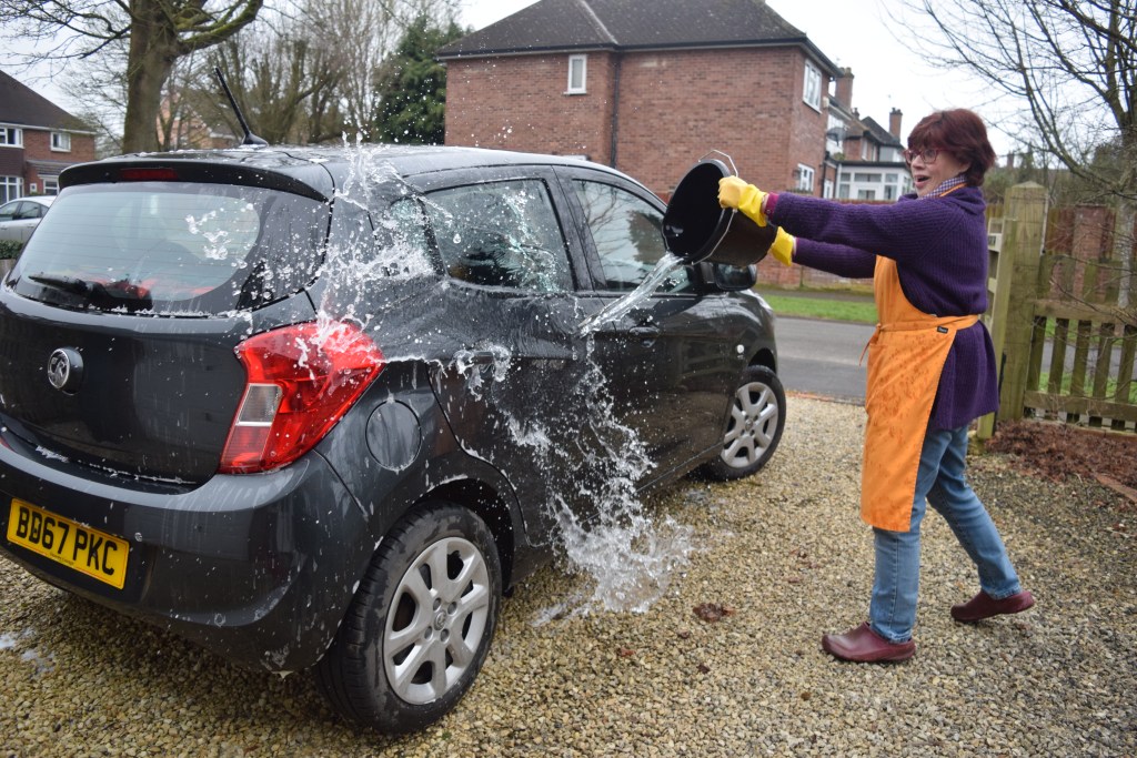 She finds this much more fun than a car wash!