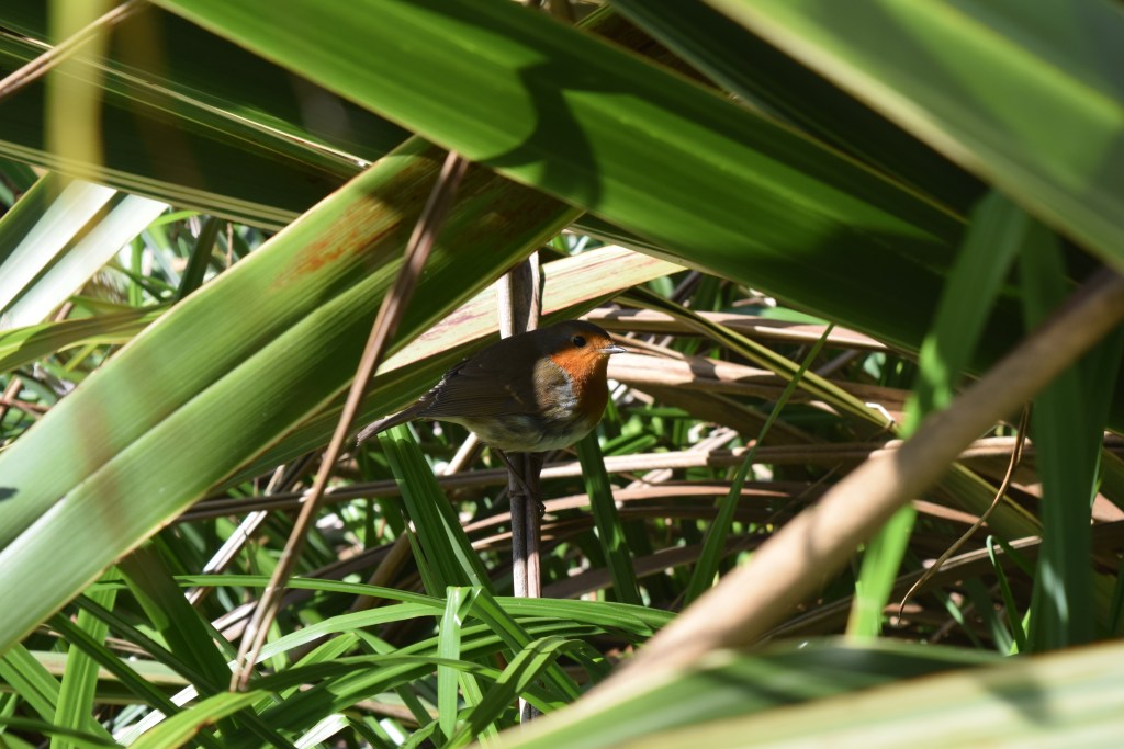 …and a robin was having a browse of the bird boxes…