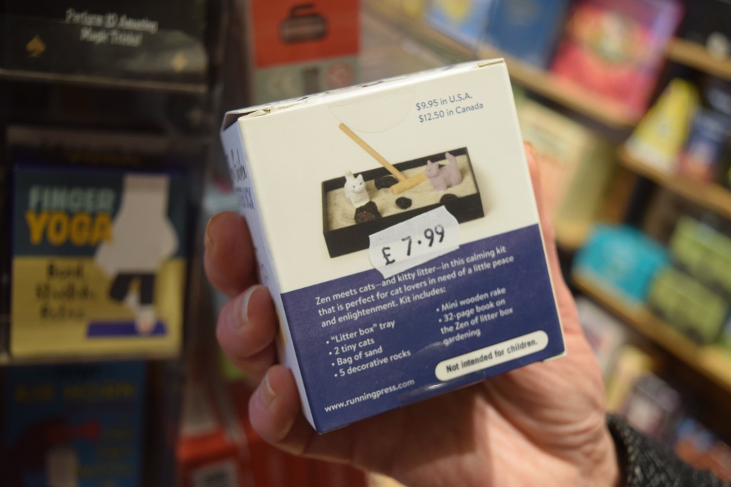 An odd thing to spot in a book shop (it comes with a 32 page book on the zen of litter box gardening…)(!)