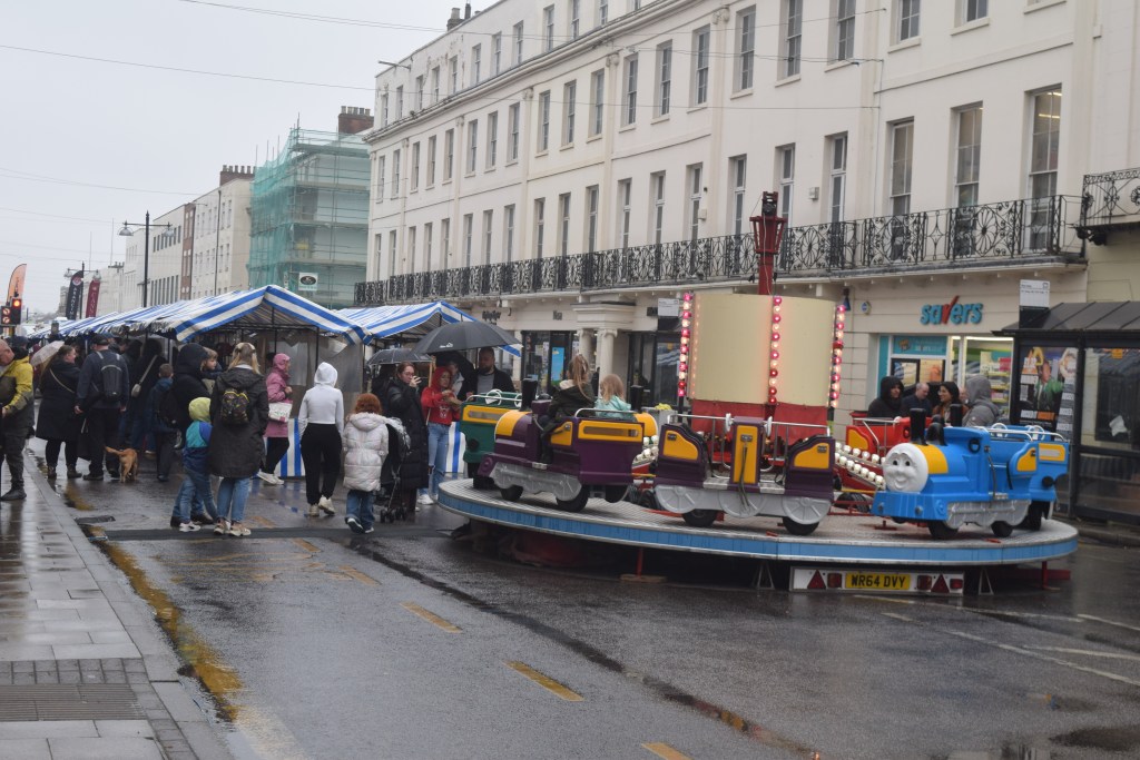 …a Japanese looking lady was manning a table of window charm things; Biscoff stuffed brownies were on the second to last stall and an American woman was behind the last (the banner said 3D printed on it); the spinning wheel of trains was still spinning at the top of the high street, and the Hook A Duck tent wasn’t looking that popular. It was 2.10pm then, my teeth were chattering and I didn’t really want to know what my hair looked like (as it was soggy and I’d been pulling the hood of my coat up and down a lot), ‘please don’t stop the music’ had got stuck in my head (due to it playing at a stall I forgot), ‘Cars At The Spa’ was being advertised on a fence banner by the park, and I forgot when I made it home.