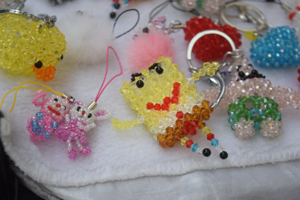 …’Sweet Treats’ had Biscoff stuffed brownies on it, and the next one was selling croc charms and mini figures; the one after that was more artistic, followed by one manned by a Chinese looking woman in a massive waterproof selling beaded window charms (and I spotted some in the shape of Spongebob).