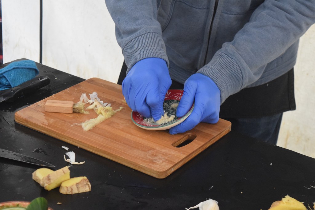 On the other side of the road was an Anytime Fitness board saying ‘do you have what it takes to lift Thors hammer?’ (there was a 20kg one and a 50kg one); a Mr & Mrs Oliver Stall was selling a heck of a lot of baklava; and lots of cake/biscuity things (including Biscoff cookie pie and doughnut cookies) were on the Shelly B Bakes stall next door. There was some sort of pink (quite posh looking) alcohol on a stall next to one with lots of knitted stuff on it (and the woman running it was knitting behind the table); black pudding sausage rolls were next to a Stirling silver one, I heard a man in a puffa jacket fart as he passed, ‘ouds’ were among products at an Arabic sort of stall; and peshtemal was another product – and a board said ‘6 good reasons to own a peshtemal’ and ‘Transform your bath routine’ on it.