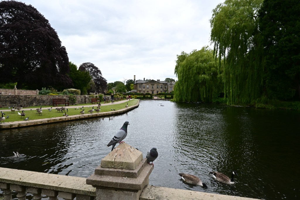 She wondered about bringing Uncle here, Coombe Abbey Hotel’s menu got looked up by J – it had ‘potted mandarin and biscott crumb’ on it (and then he realised the ‘cheesecake’ on the line below was included), Mum recommended the artwork at Compton Verney and Upton House, D’s electric wheelchair made reversing noises (and Johnny English shooting down The Mall on a mobility scooter was remembered); we moved again, Top Gear and Clarksons Farm were talked about with J; and then I spotted someone with ‘Mould Danger’ on the back of his shirt, and something I forgot was mentioned – and I forgot because we reached a river sort of area of water and I got distracted.