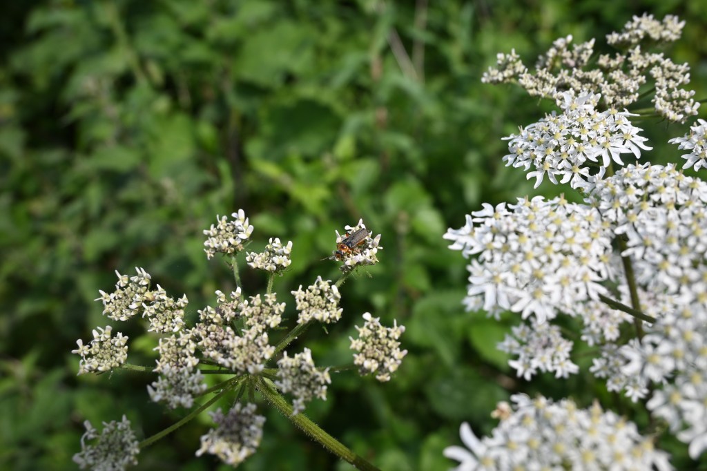 The plant is cow parsley, and the insect’s a soldier beetle…