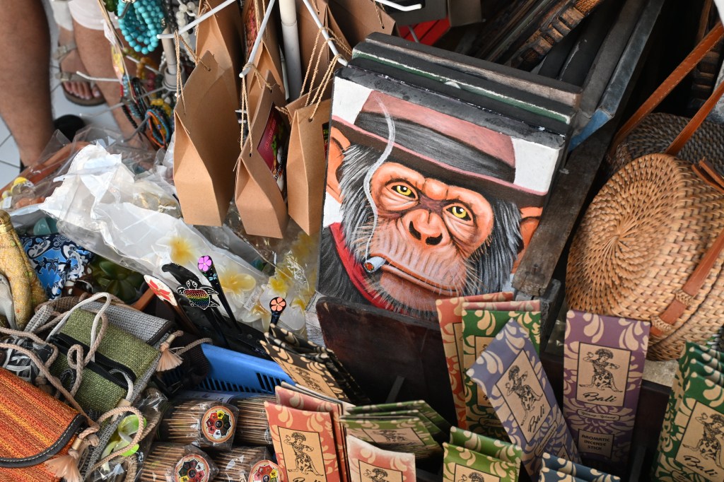A Balinese market stall with an example of a slightly different species of monkey…