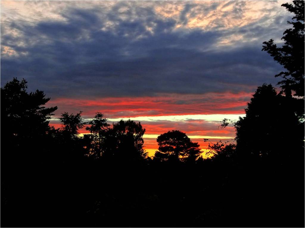 …and an English sunset (lots of fur trees visible)