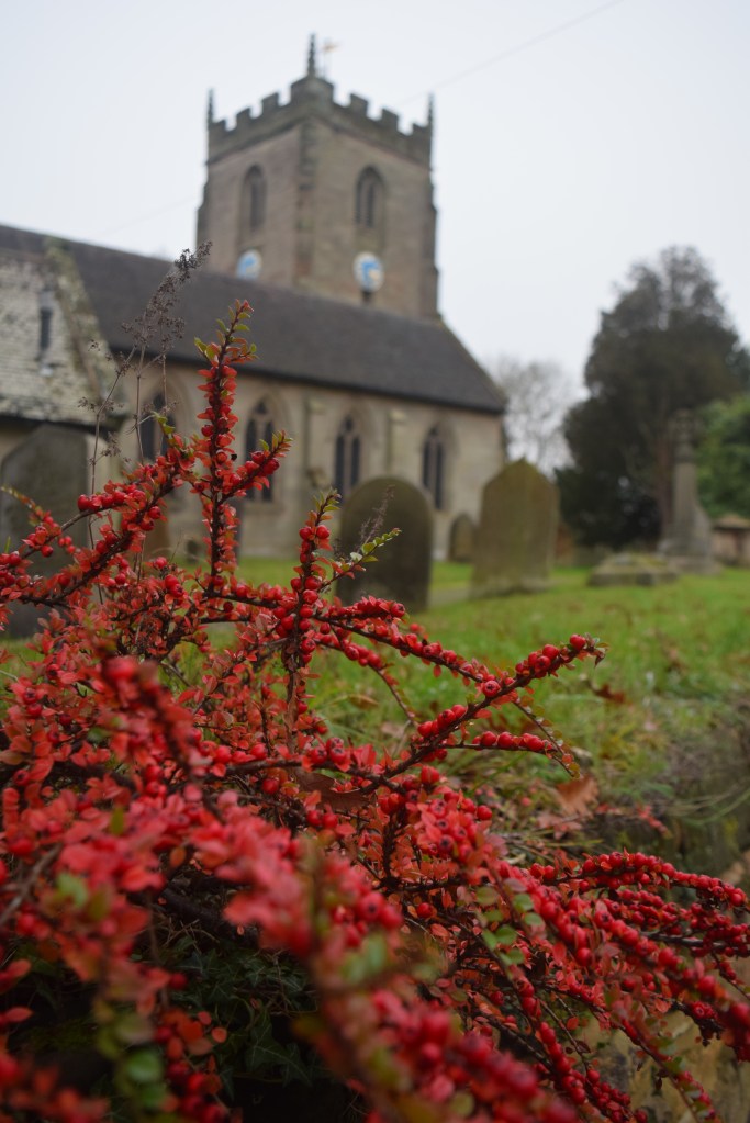 These little red flowers are already bringing a bit of Christmas feeling to the ancient churchyard just down the road