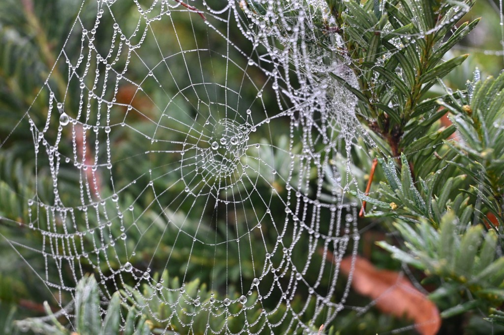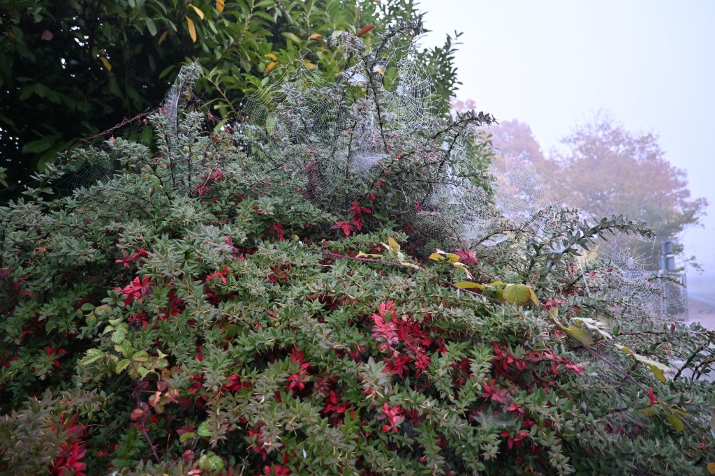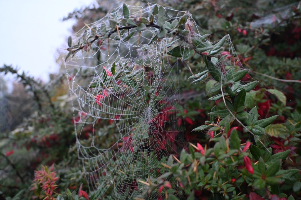 Some seriously intricate engineering by the local spiders (a few of whom were visible out braving the frost!)