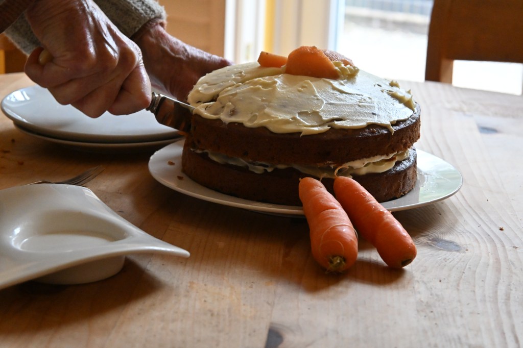 My first attempt at carrot cake baking (and it was entirely edible – nothing added to my Accidental Recipe notepad this time).
