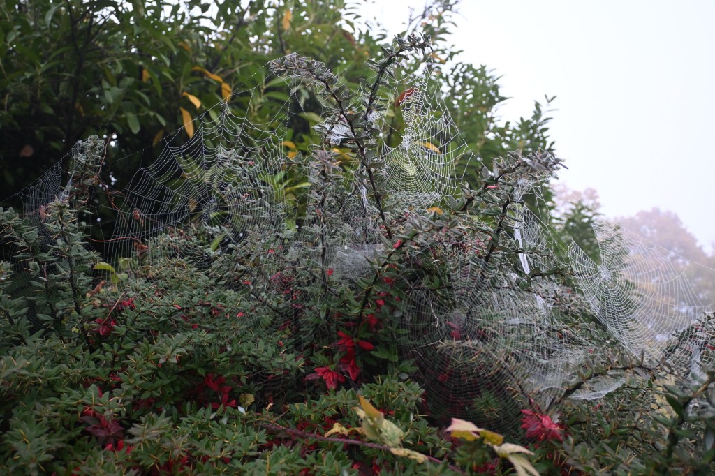 Frosty cobwebs were all over this thorny plant I noticed early one morning.