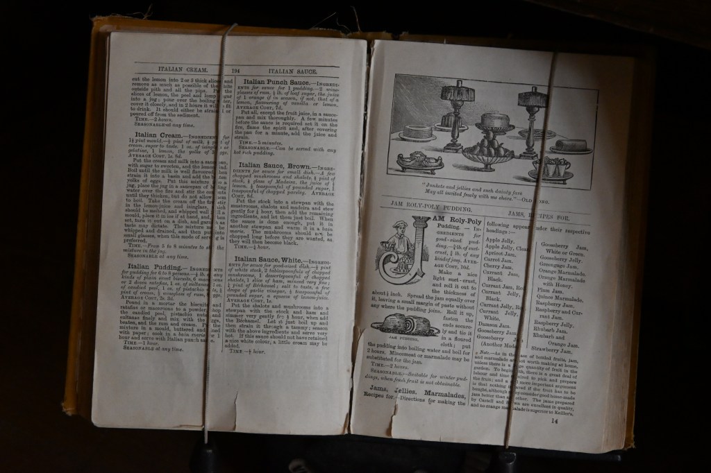 An ancient recipe for jam rolypoly – published by a Mrs. Isabella Beeton in 1861.