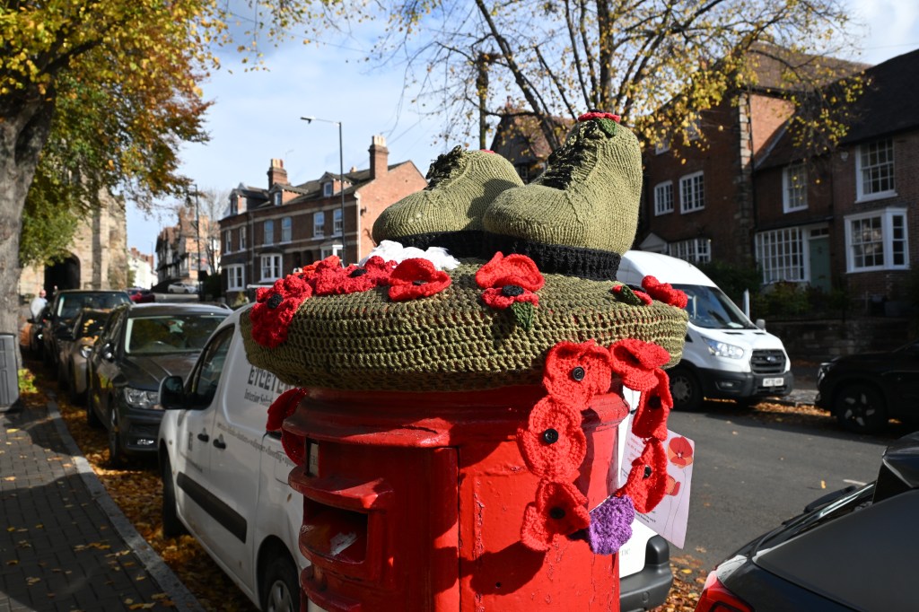 Some seriously impressive knitting fitting this post box – and excellent community commemoration for Remembrance Sunday.