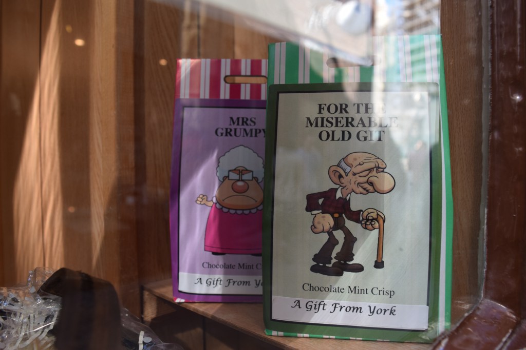Back outside – a woman was singing, John Hull Fudge & Toffee makers had cinder toffee in its window, there was a shop called ‘The Cat Gallery’ – with a Cat It Design Senses Super Roller Circuit, a Senses Feeding Maze, and a lot of squidgy cat soft toys (among other things); outside again was a Fudge Kitchen, a man playing an accordion, a ‘The York Roast Co’ was selling ‘Yorky Pud Wraps’, there was a horse carousel – and then a York Chocolate Shop, which we went into and saw guided tours of the place on offer, nibbled a cookie and an ice cream beforehand, and then squished into a lift with 7 other people.
