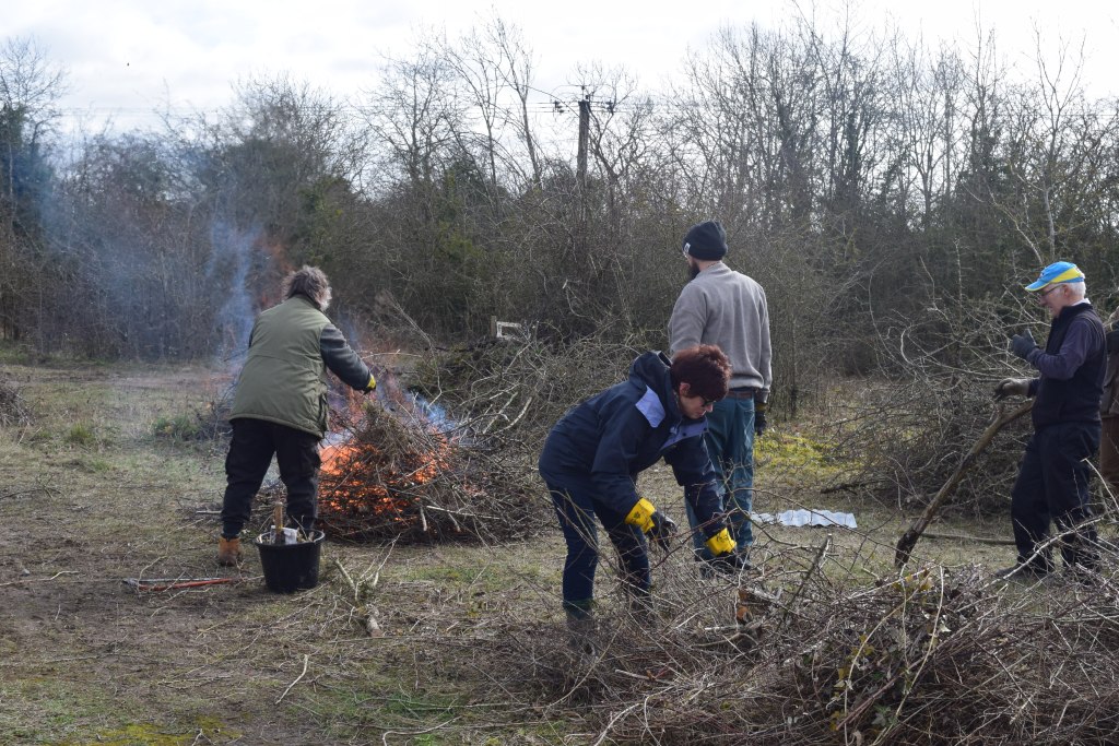 On the drive to the wildlife reserve where we’d been volunteering , I saw a car which was having a sofa strapped to the top of it, and we parked on a hill in between some houses and a field; and once out of the car, we went up a path, met a thin man in a sock hat who Mum said quietly was called Phillip, a woman walked past with three little dogs (each in a different coloured coat – purple, red and blue), another man called Peter appeared and started unloading stuff from his van, then another man turned up and we were led up the hill, one of the dogs (who was wearing a purple coat) tried to climb up my leg, then Peter told us we’d making bonfires today. That was started, I saw a tiny mouse, then helped a man with a bit of fence building, 2 very nice floppy spaniels sprinted past, I tried to photograph the flames, the smoke and heat was unbelievable, Mum picked up a big bundle of branches, and 1 man said she looked like she was in Macbeth.